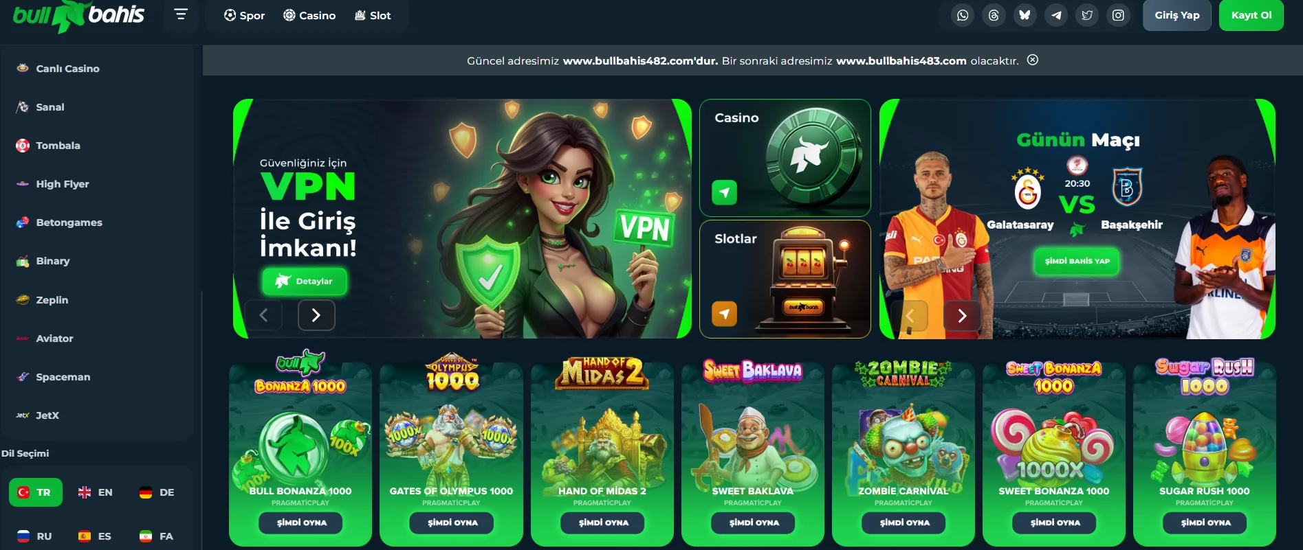 Canlı Casino, E-Spor, Kripto Casino, Slot, Spor Bahisleri