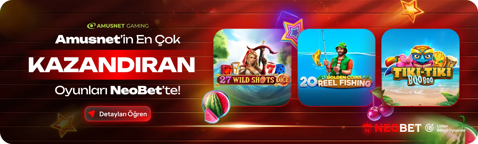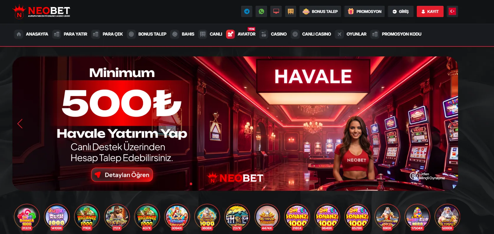 NEOBET’in oyun evreni; canlı casino, e-spor, spor bahisleri, slot ve kripto oyunlarının dengeli bir kombinasyonuyla yapılandırılmıştır. Yaygın içerik sağlayıcıları yerine seçici bir kürasyonla ilerleyen marka, portföyüne Belatra, Beter.Live, BoomingGames, Fantasma, HolleGames, Lucky, EveryMatrix, Spribe, TurboGames, CTGaming, IgroSoft, SalsaTech, WorldMatch, XProGaming, Merkur, Gamomat, Atomic, Popok, BetGames, RawGames ve daha fazlasını dahil eder. Bu yaklaşım, farklı volatilite seviyelerine ve oyun tarzlarına sahip oyunculara zengin bir seçenek yelpazesi sunar.