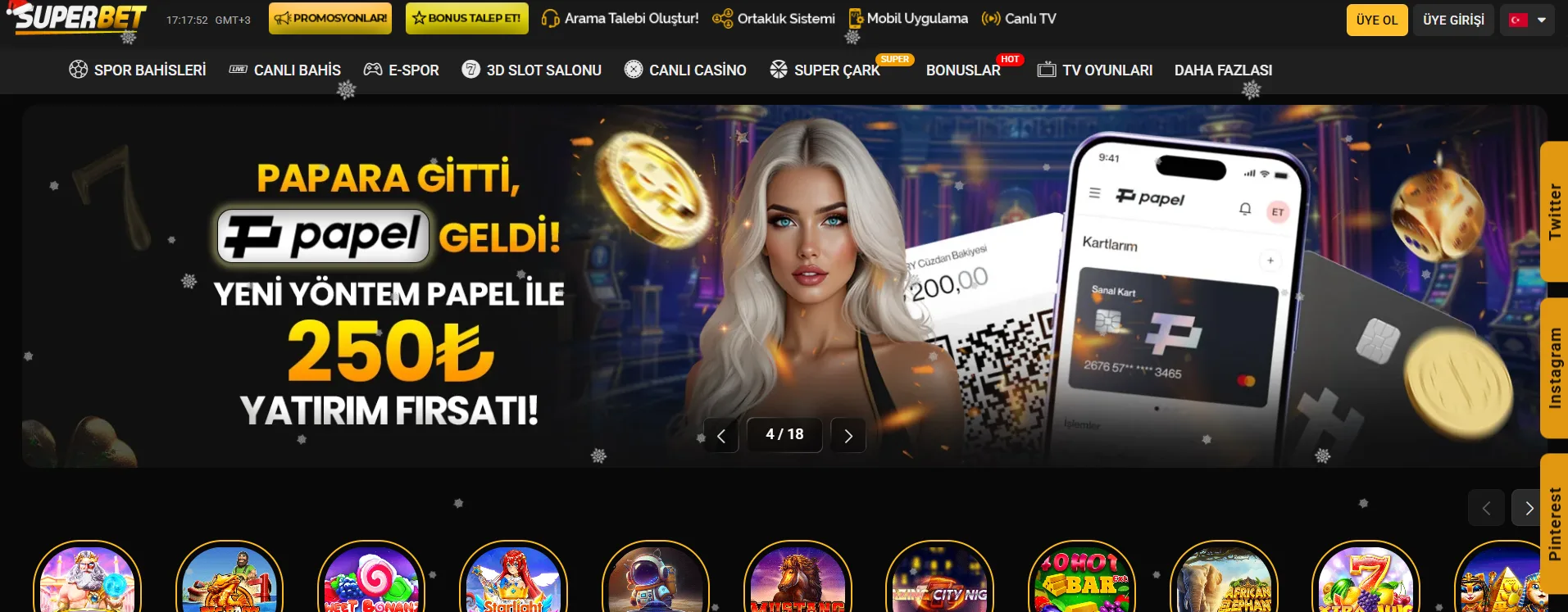 Canlı Casino, E-Spor, Kripto Casino, Slot, Spor Bahisleri