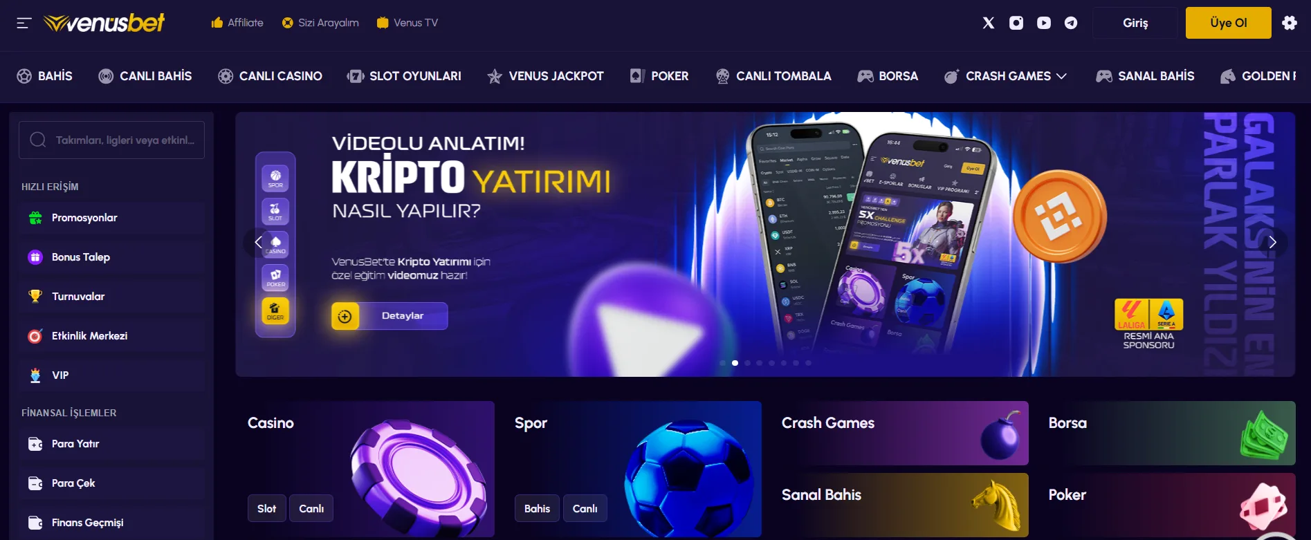 venüsbet, yatırım ve çekim seçeneklerini Türkiye gerçeklerine uyarlı tutmaya çalışıyor: Banka Havalesi/EFT, kredi kartı ve kripto para desteği aynı çatı altında toplanmış durumda. Tek para birimi desteği Türk Lirası; bu, lira ile oynayan kullanıcılar için kur çevrim riskini azaltırken, kripto ile giriş yapanlar için ayrı bir dönüşüm süreci yaratıyor. Kripto kullanırken borsada TL’ye dönüş aşamasında ek masraf çıkma olasılığı göz ardı edilmemeli.